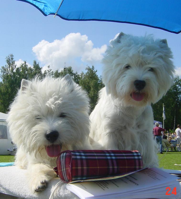 Pierwszy West Highland White Terrier(Westie) zawitał do naszego domu w roku 1998. Fascynują nas swoim żywym temperamentem, radosną i wesołą naturą. Te małe (ale wielkie duchem) psy odnoszą się z przyjaźnią i miłością do wszystkich domowników, wesoło figlują z dziećmi podczas zabaw, są wspaniałymi kompanami różnych wycieczek. Są również bardzo czujnymi stróżami. Przez długi okres czasu myśleliśmy, że nic wspanialszego od Westie już nas nie spotka. Mieszkając wśród białych piesków zaczęliśmy się rozglądać za "kolorowymi" psiakami.