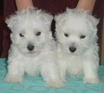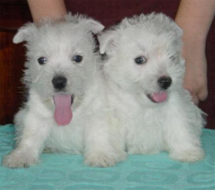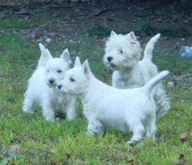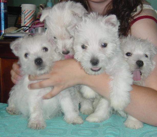 Westie były zaskoczone kolorowymi szczeniętami.