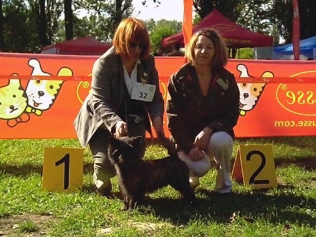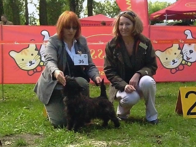 Nasza Cairn Terrierka wystawiana po raz pierwszy w klasie młodzieży - BLACK LABEL SOCIETY Grandiflora - ocena doskonała, 1 lokata, Zwycięstwo Młodzieży, Najlepszy Junior w Rasie. Sędzia: Anna Cwiecekova (SK).