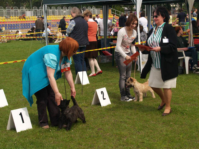 Krajowa Wystawa Psów Rasowych w Płocku. Nasze młode Cairniki wystawiane w klasie szczeniąt, spisały się doskonale: BLACK LIGHT BURNS Grandiflora - wybitnie obiecujący.