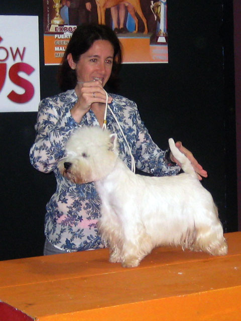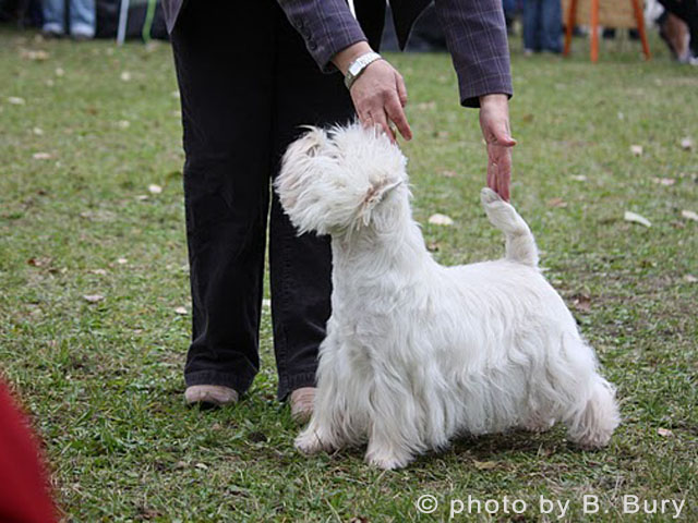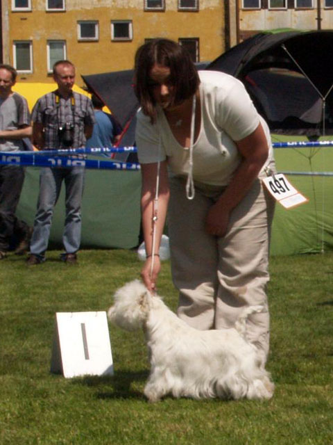 Wielkie gratulacje dla właścicieli DREAM DRUMMER Grandiflora, który w klasie pośredniej, otrzymał ocenę doskonałą i CWC. Tak trzymać :))) Zarówno Cairny jak i Westy sędziowała D. Kuczyńska-Standełło.