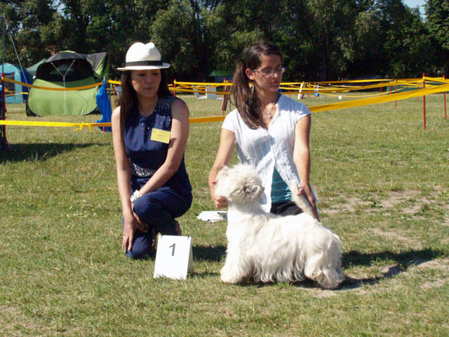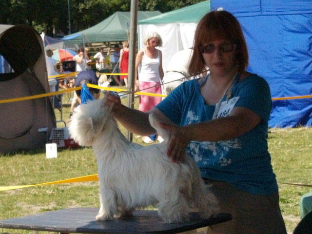 Międzynarodowa Wystawa Psów Rasowych w Warszawie. Mała Luna (PRODIGY AT Grandiflora) debiutowała w klasie baby. Chyba z powodu wielkiego upału nie chciała chodzić w pojedynkę - stąd piękny opis bez oceny. MASTER OF PUPPETS Grandiflora - ocena dobra w klasie otwartej. DONNA ALAYA Grandiflora - ocena b. dobra w klasie pośredniej. NIGHTWISH AT Grandiflora - ocena doskonała, 3 lokata, klasa otwarta. MICHELLE GRANDIFLORA Urwiska Szkocji - doskonała, 1 lokata, klasa weteranów, Najlepszy Weteran w Rasie. Sędzia: Elaine Ty (Filipiny). Wielkie gratulacje dla Oli Jaźwińskiej, za zdobycie tytułu Najlepsze Szczenię w Rasie z suczką BLONDE REDHEAD Grandiflora :) Przy tej pogodzie to wyczyn! Cairny sędziował Z. Kitliński. Wielkie podziękowania za pomoc i towarzystwo dla Marty Węglewskiej i Patrycji Smoleńskiej, dziękujemy :)
